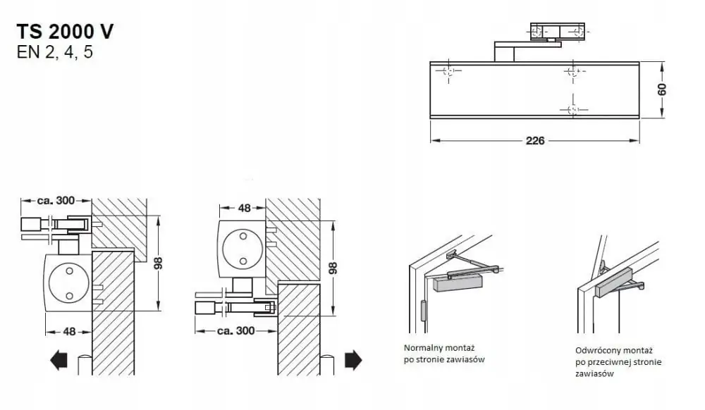 - Do drzwi pojedynczych o szerokości max. do 1100 mm oraz 80 kg