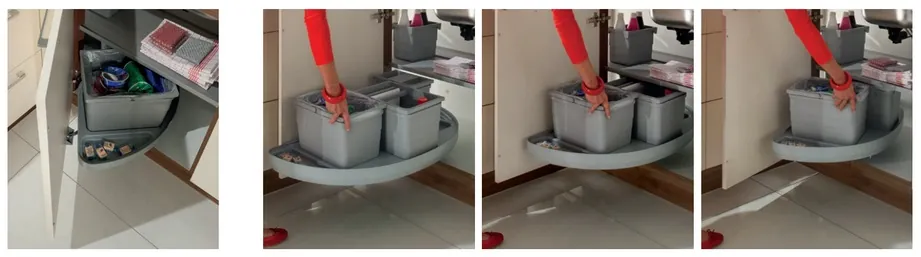 Odkryj funkcjonalność nowoczesnej szafki narożnej, która dzięki innowacyjnemu systemowi Ninka 1dwaSlide sprawia, że nawet najtrudniejsze do zagospodarowania miejsce w kuchni staje się w pełni dostępne i wygodne w użytkowaniu. Ten system to rozwiązanie idealne dla osób ceniących ergonomię i komfort w codziennym użytkowaniu kuchni.