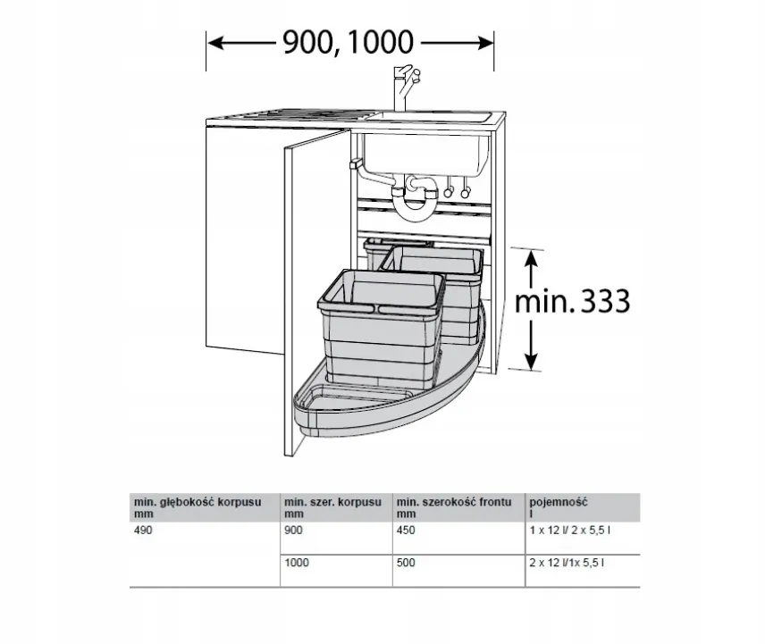 - 3 kosze: 2 x 12L, 1 x 5,5L