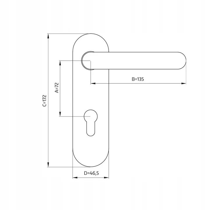 - Klamka z rozetą podłużną szerokości 45 mm i długości 170 mm