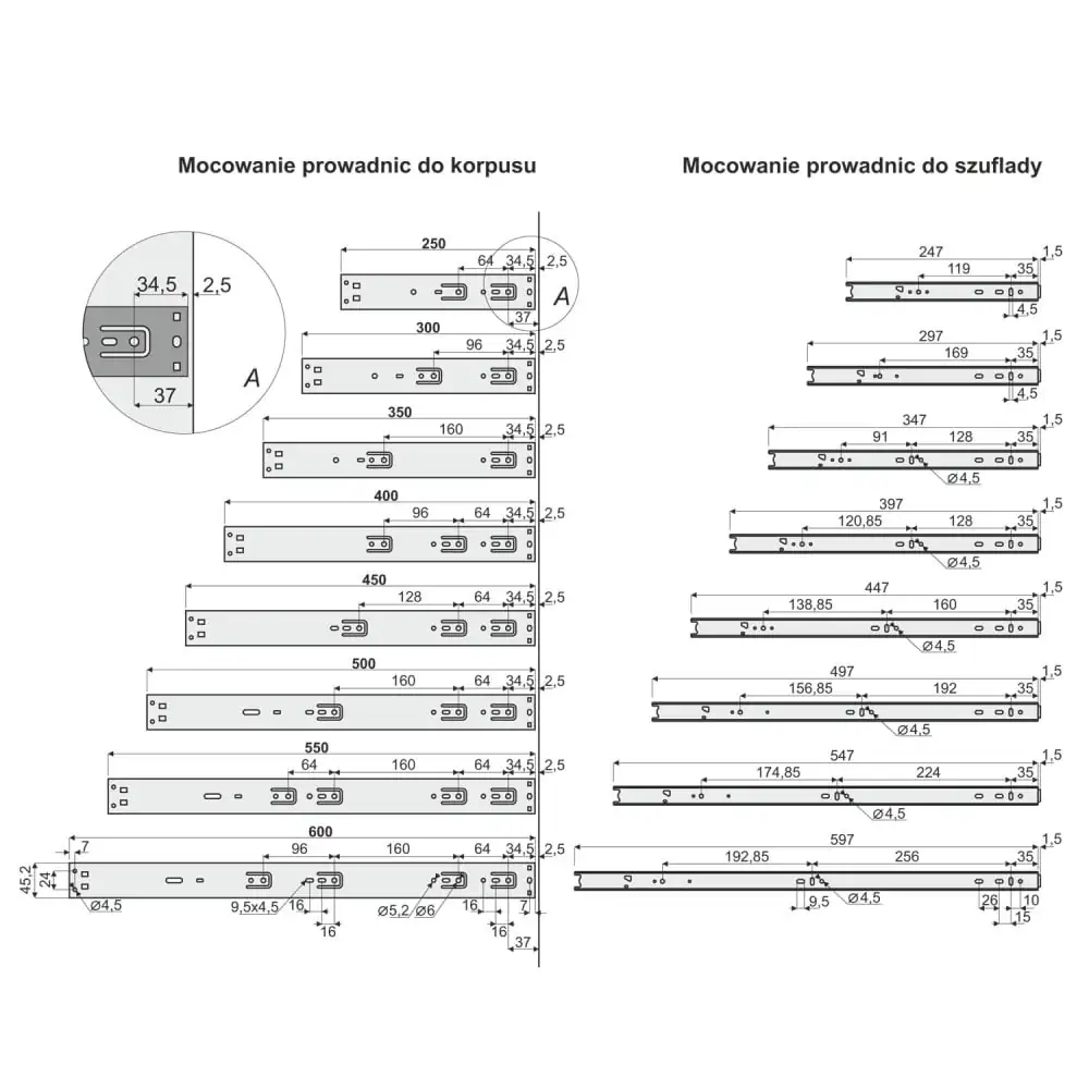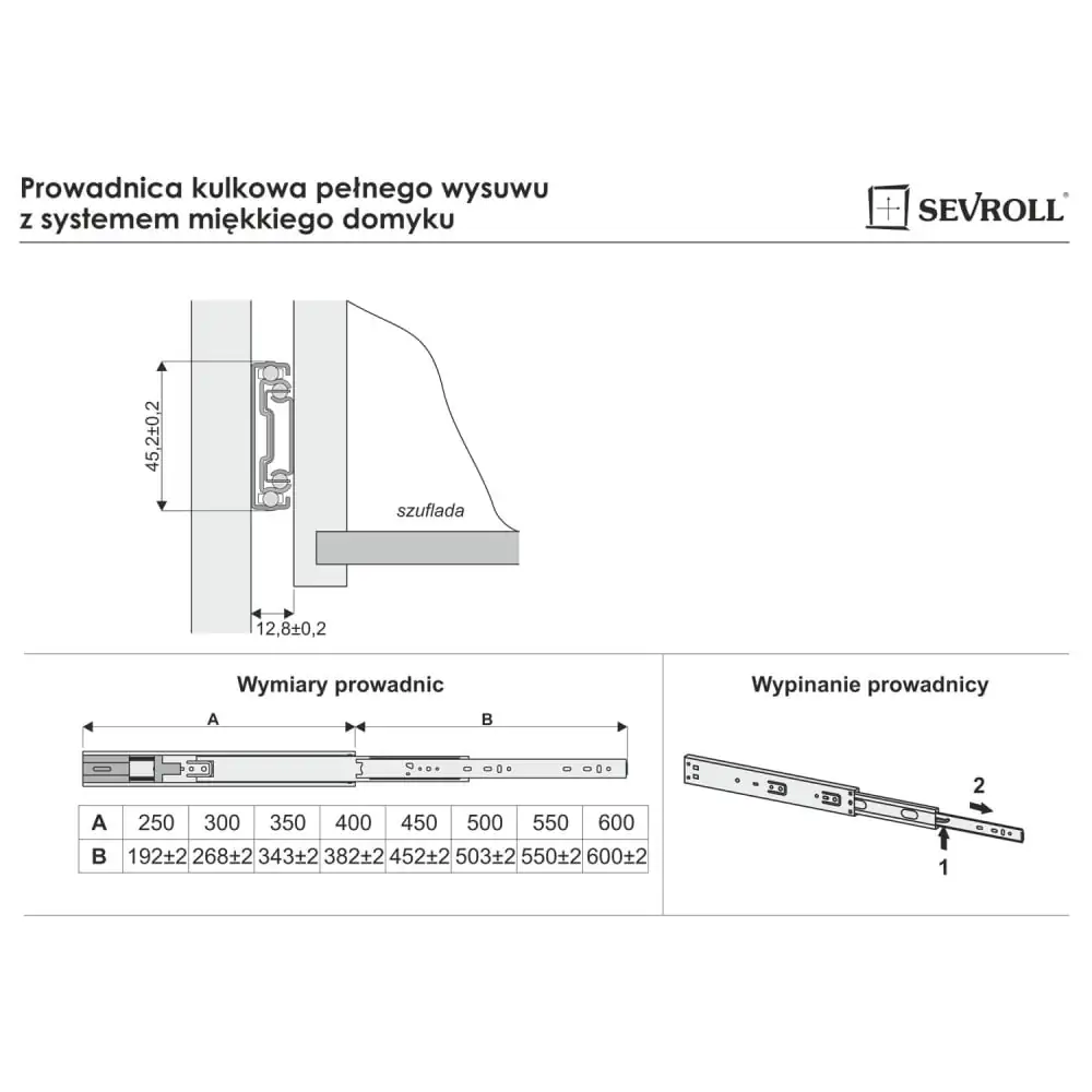 Jak na wytrzymałe systemy szuflad przystało, prowadnica kulkowa Sevroll jest w stanie wytrzymać obciążenie do 30 kg, dzięki czemu sprawdzi się ona zarówno w salonowych meblach, jak i kuchennych. Zaprezentowany model ma wysokość 45 mm i jest łatwy w montażu, do którego nie trzeba posiadać specjalnych narzędzi.