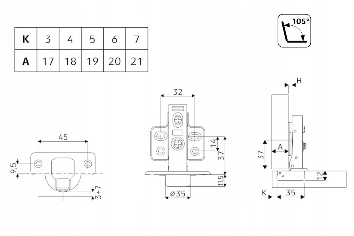 - 2x zawias nakładany 3D z regulacją mimośrodową