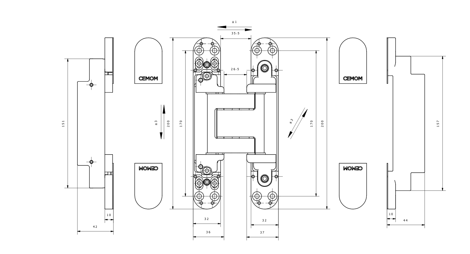 • regulacja 3D (pozioma +/-3mm, wysokość +/- 3mm, docisk uszczelki +/- 1mm)