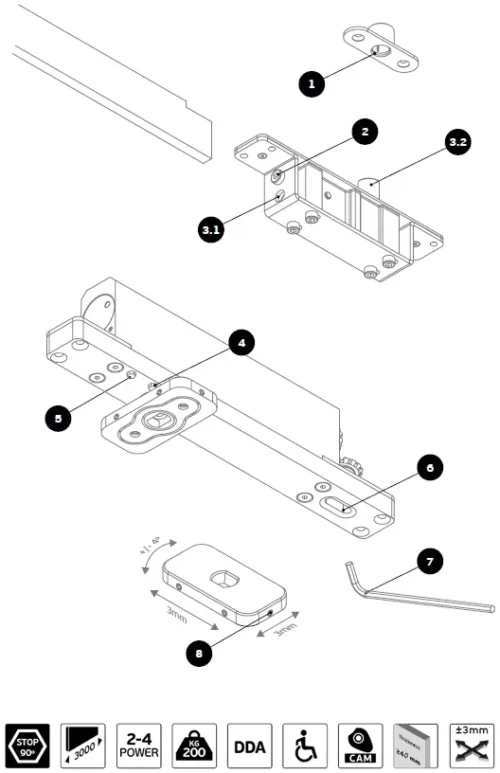 Zastosowany system krzywkowy w połączeniu z mechanizmem hydraulicznym pozwala na płynną i kontrolowaną pracę drzwi. Zawias wyposażony jest w: